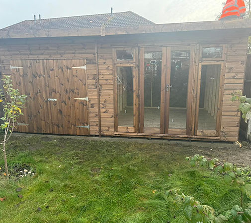 Our Summehouses are built using full length windows and doors. We use toughened glass in order to help avoid issues with breakages. Our doors have a mortice lock fitted with 2 keys supplied.Every building built by Earsham Sheds is constructed using 3x2 framework, High grade Tongue and Groove,Tar papered to help with condensation and roofed with 30kg green mineral felt. No chipboard is used throughout the process